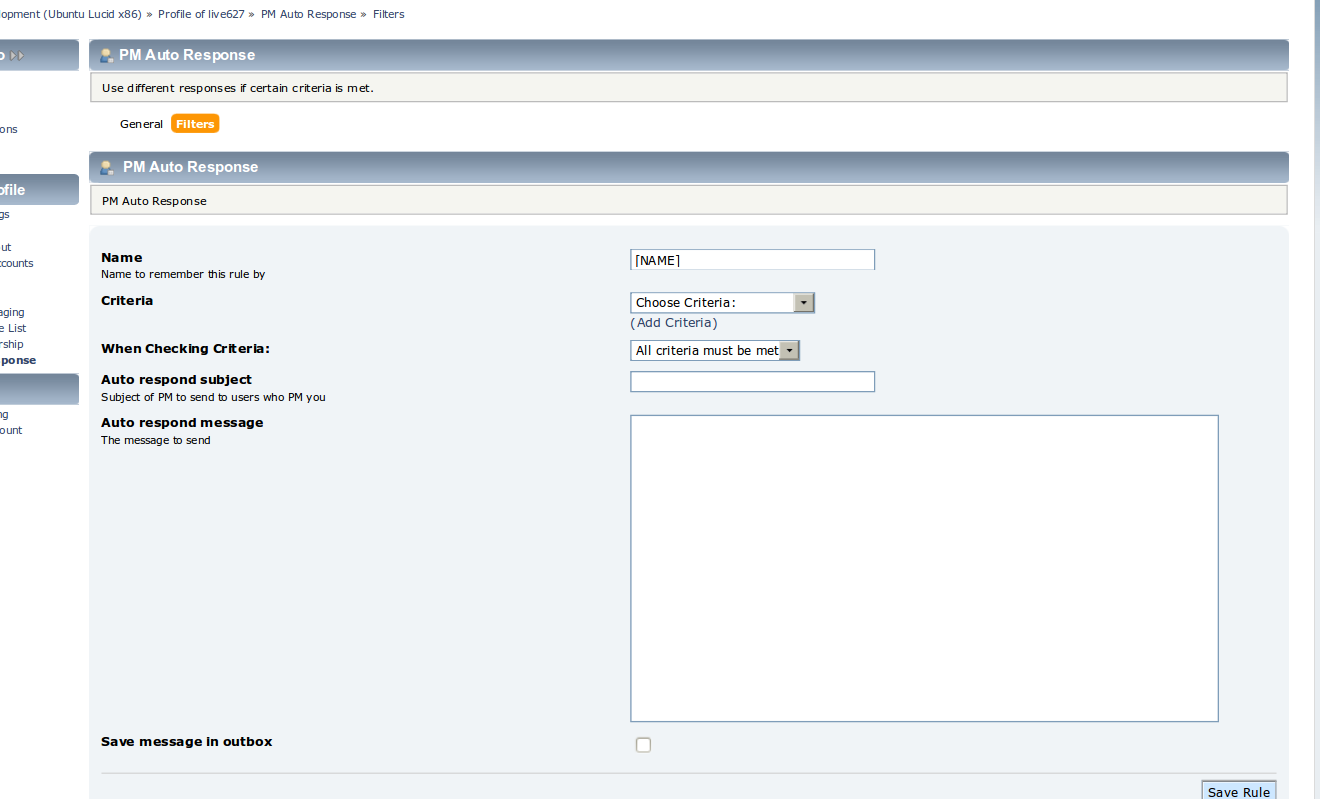 Depending on certain criteria found in the incoming message, you can create different variations for auto response. This feature is very similar in nature to the PM Rules in SMF 2.